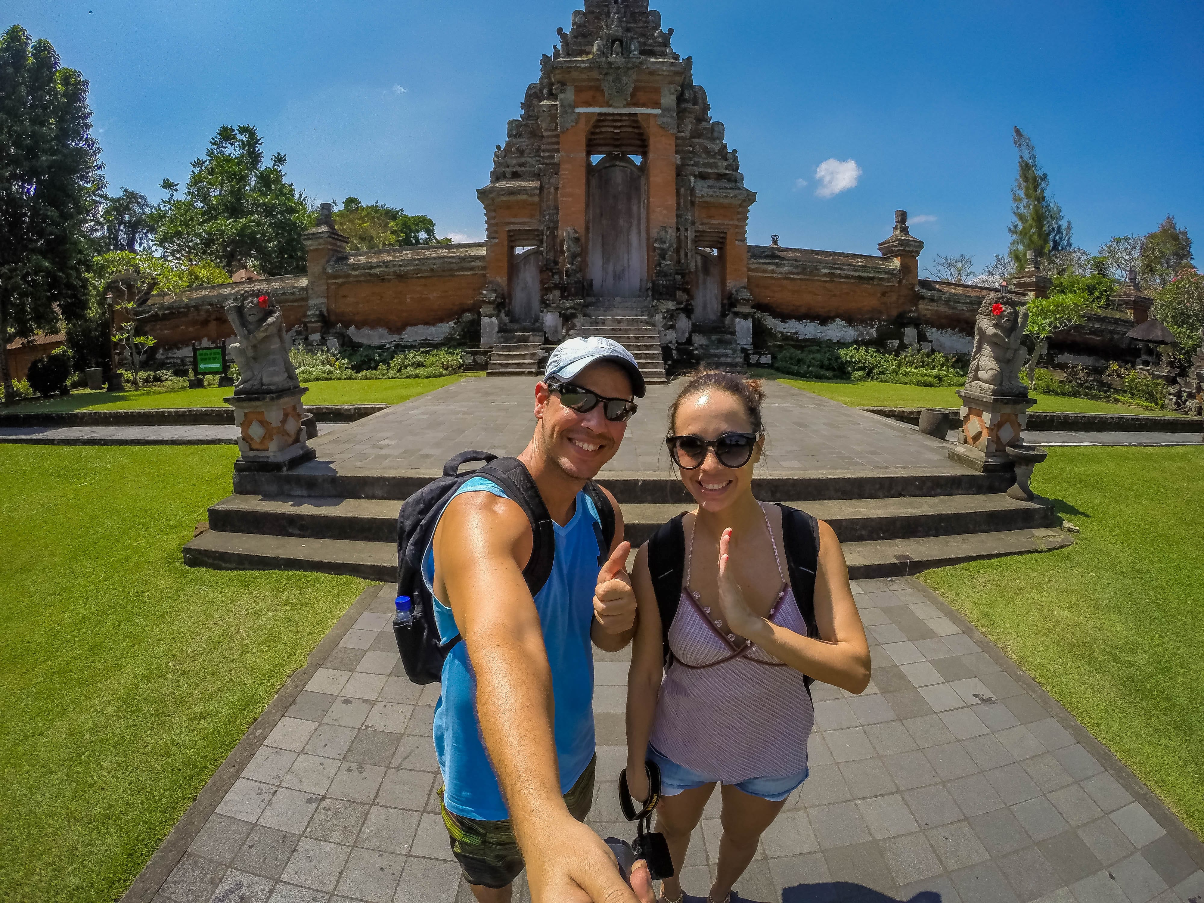 Após provarmos o delicioso café Luwak Coffe nos arredores de Ubud, partimos para conhecer o templo Taman Ayun. Como na maioria dos templos em Bali, não é permitida a entrada no interior do templo. A visitação é apenas na parte externa, mas você terá uma visão completa do templo.