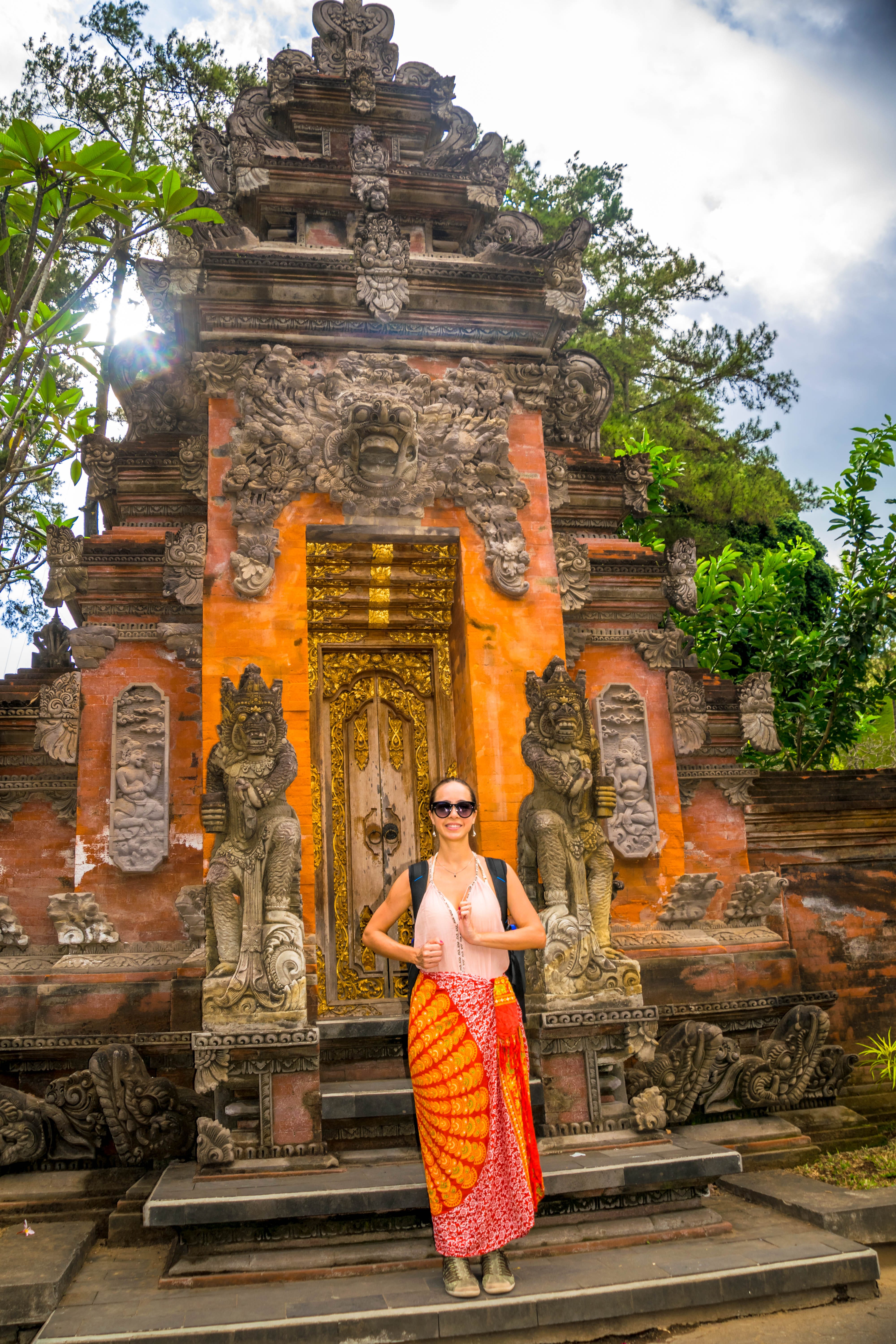 Obrigatório o uso do Sarong (pano que te ajuda a cobrir as pernas em sinal de respeito pela cultura e religião hindu; o pano deve ser usado por ambos os sexos).