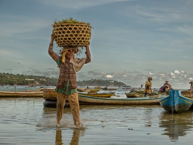 Desde 1984, os habitantes da ilha trabalham no cultivo, colheita e secagem de algas marinhas, para vender-las por míseros IDR3.000/ U$0,33 o quilo depois de seca, que equivalem a 5kg de alga verde. As algas são exportadas para indústria de cosméticos do mundo todo!