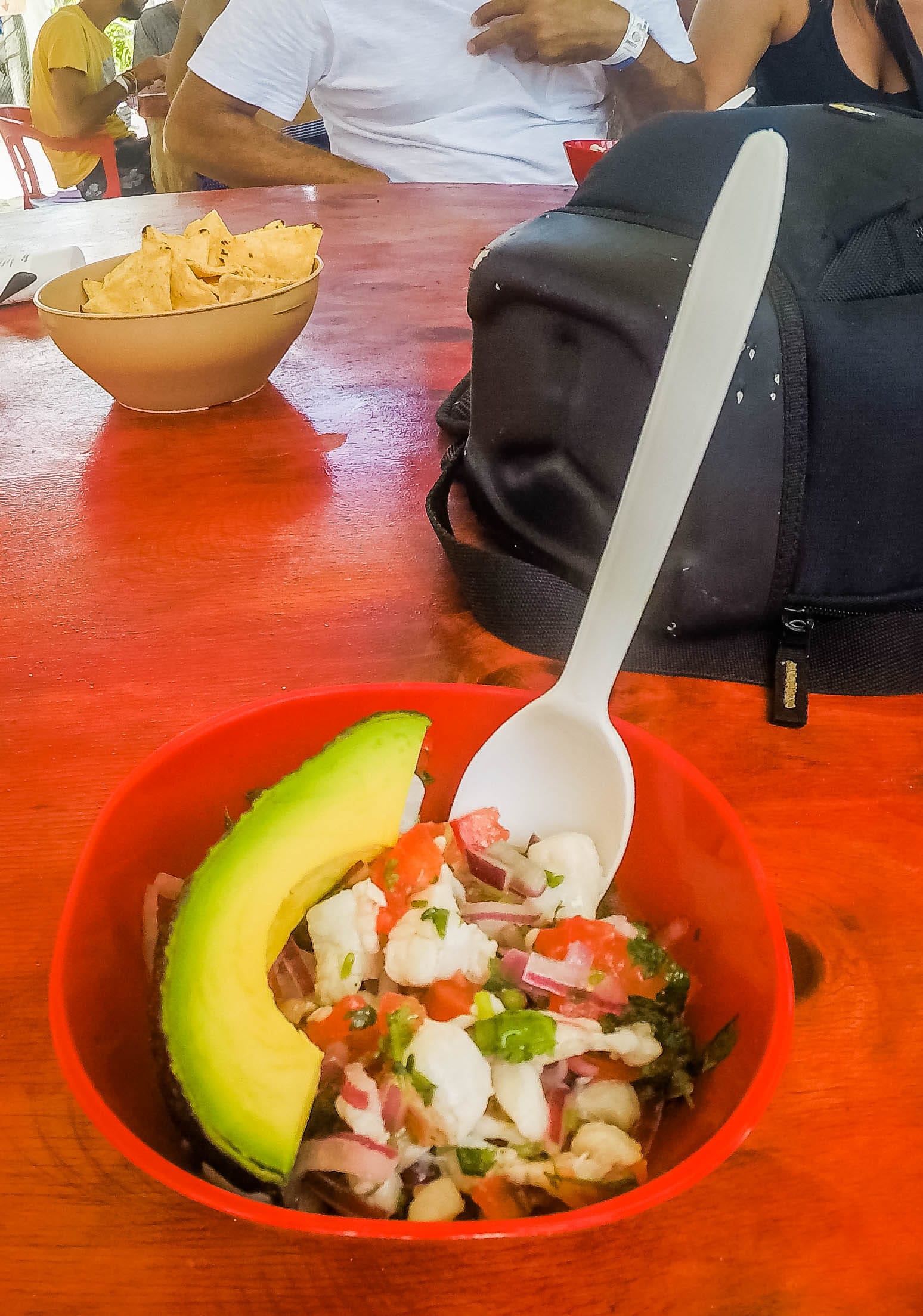 O passeio consiste em dois encontros com o tubarão baleia por dupla, só caem duas pessoas por vez junto com um guia que acompanha as pessoas que não possuam uma boa natação. Mas é tudo muito tranquilo e organizado para não assustar o animal. Depois dos mergulhos com tubarões vamos para um outro ponto em frente a Ilha Cabo Catoche para mergulhar em ponto com muitos corais e peixes. Nesse ponto vocês poderão observar tartarugas, arraias, tubarões e muitos peixes. Cuidado com os corais fogo e as gorgônias, eles queimam. Durante o mergulho o capitão do barco começa a preparar um delicioso Ceviche, ficamos uns 30 minutos nesse lugar. Depois partimos para a Ilha Cabo Catoche para degustar o delicioso ceviche. O passeio começa às 07:00 e retornamos para Holbox por volta das 13:30. Custa US$ 106,00 por pessoa.