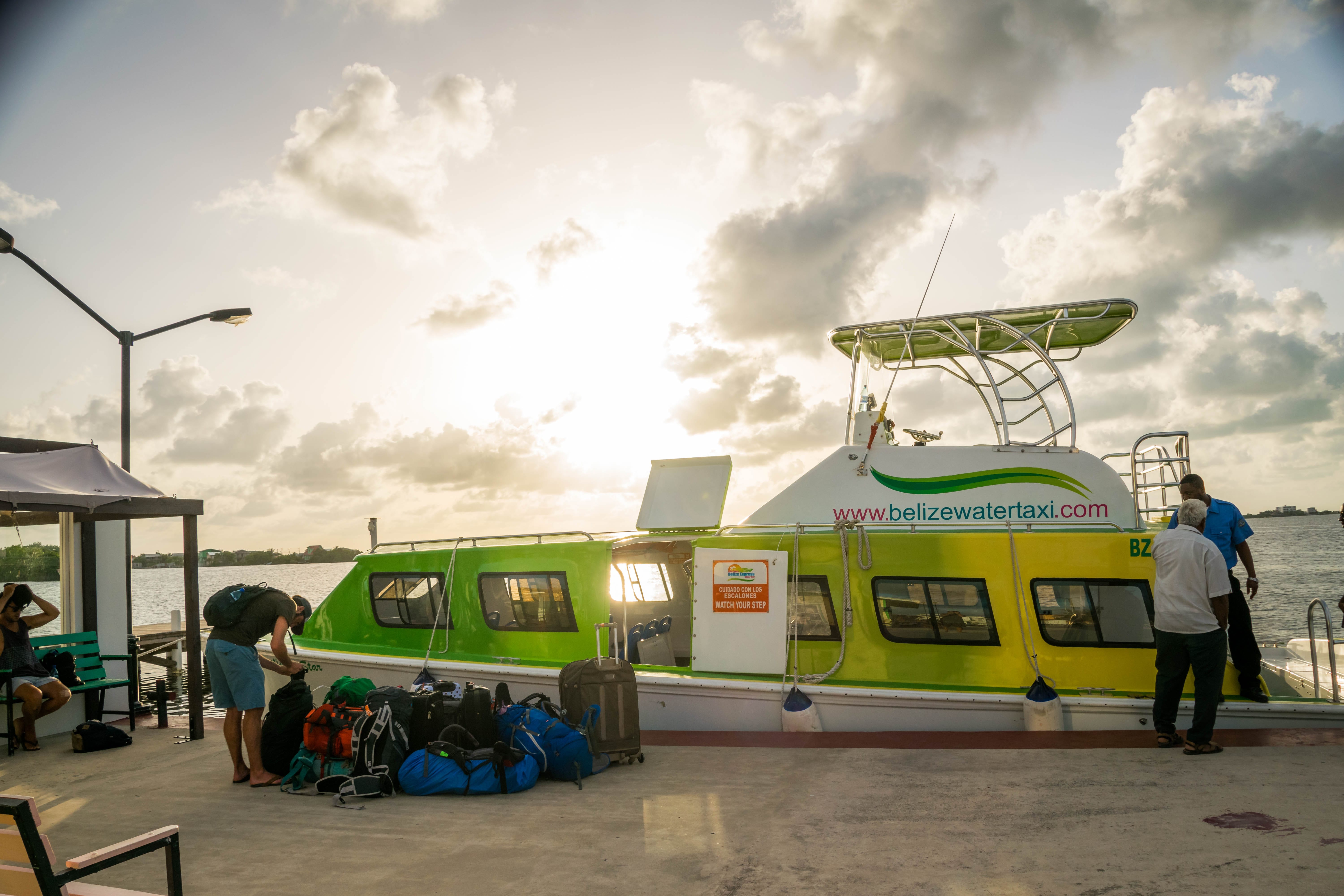 Utilizamos a empresa belize water taxi, para ir do terminal marítimo para Caye Caulker. Site da empresa (Clique aqui). O barco geralmente sai lotado. No site da empresa é possível fazer a reserva e pagar com paypal. Foi o que eu fiz.