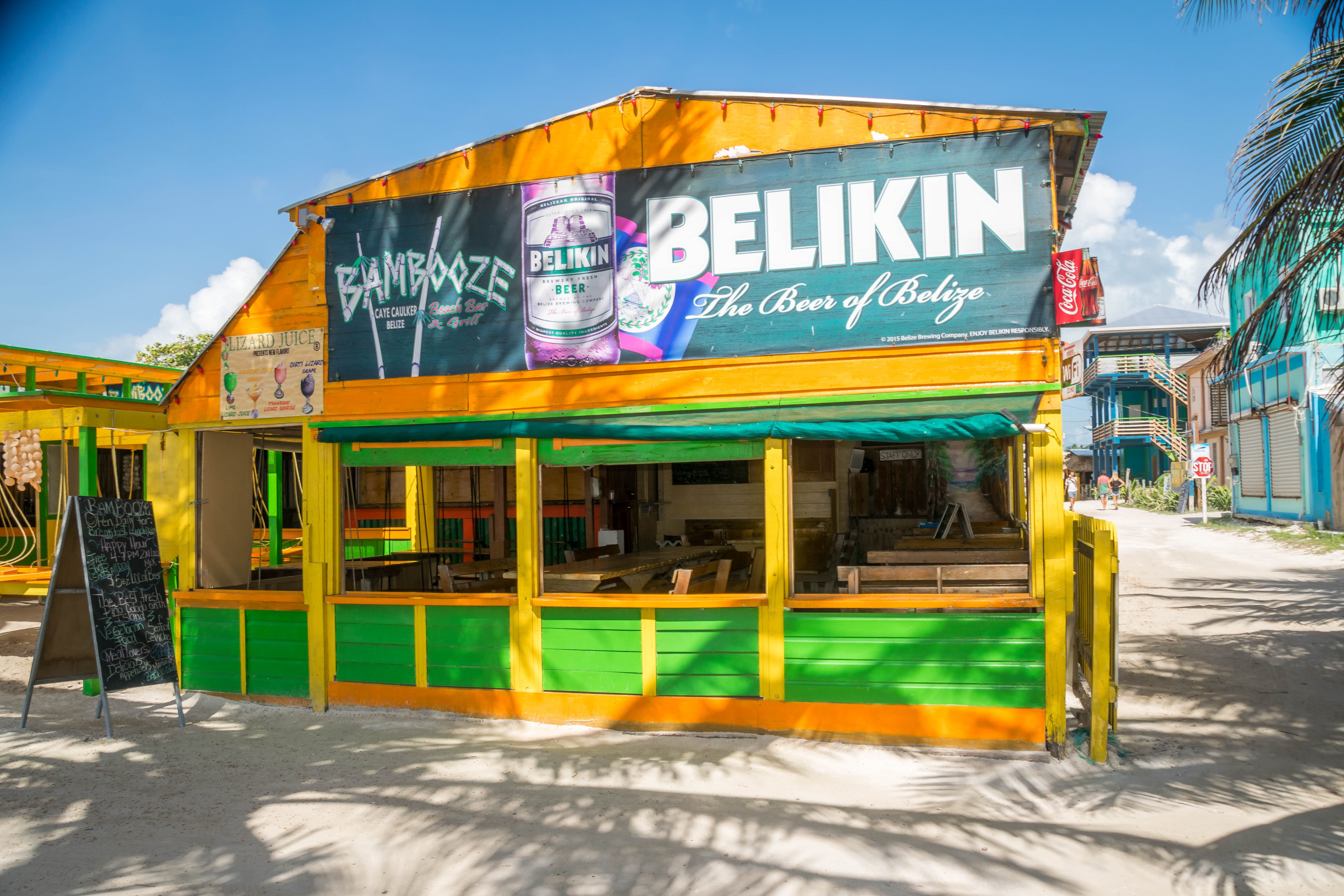 >Dica: É aconselhável levar consigo todo o dinheiro que pensa necessitar durante a estadia em Caye Caulker, pois a aceitação de cartões de crédito é limitada e não há ATMs para sacar dinheiro.