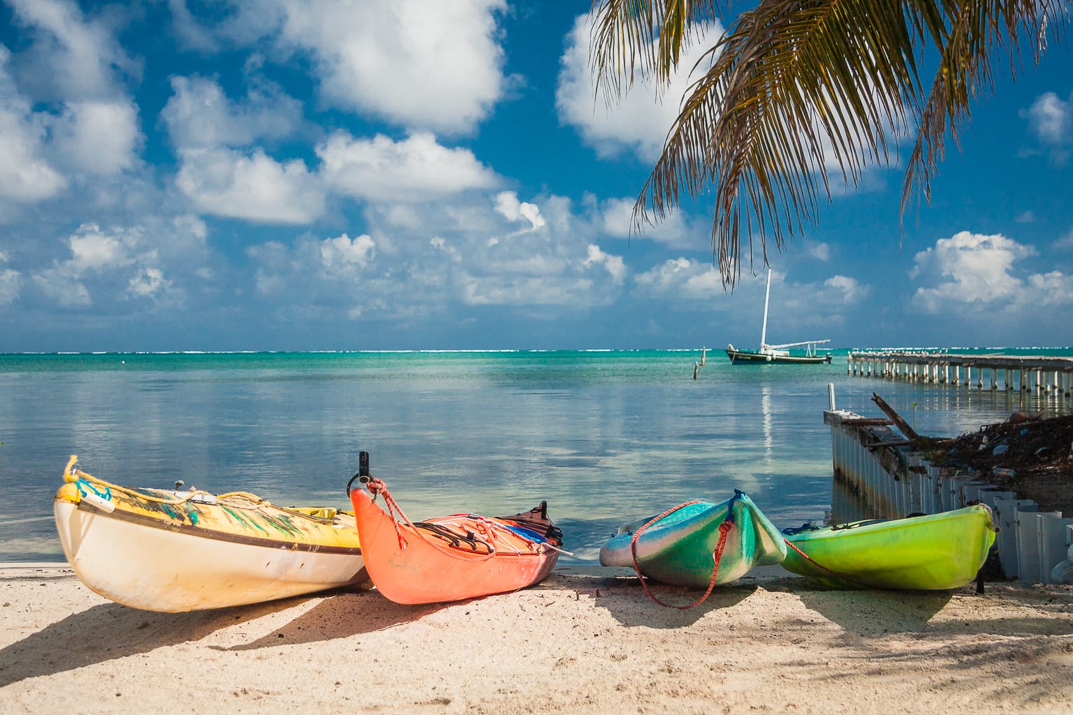 Caye Calker é mais relaxada, com alguns poucos nativos fazendo as honras da casa em seus hotéis e guesthouses na beira da praia, sem deixar que ela perca o seu charme. As ruas de areia, os piers de madeira, o tempero local e as casinhas coloridas detrás dos coqueiros ainda guardam a alma caribenha e o ritmo descompassado de um típico paraíso tropical. Um pouco sobre a história de Caye Caulker (Clique aqui)
