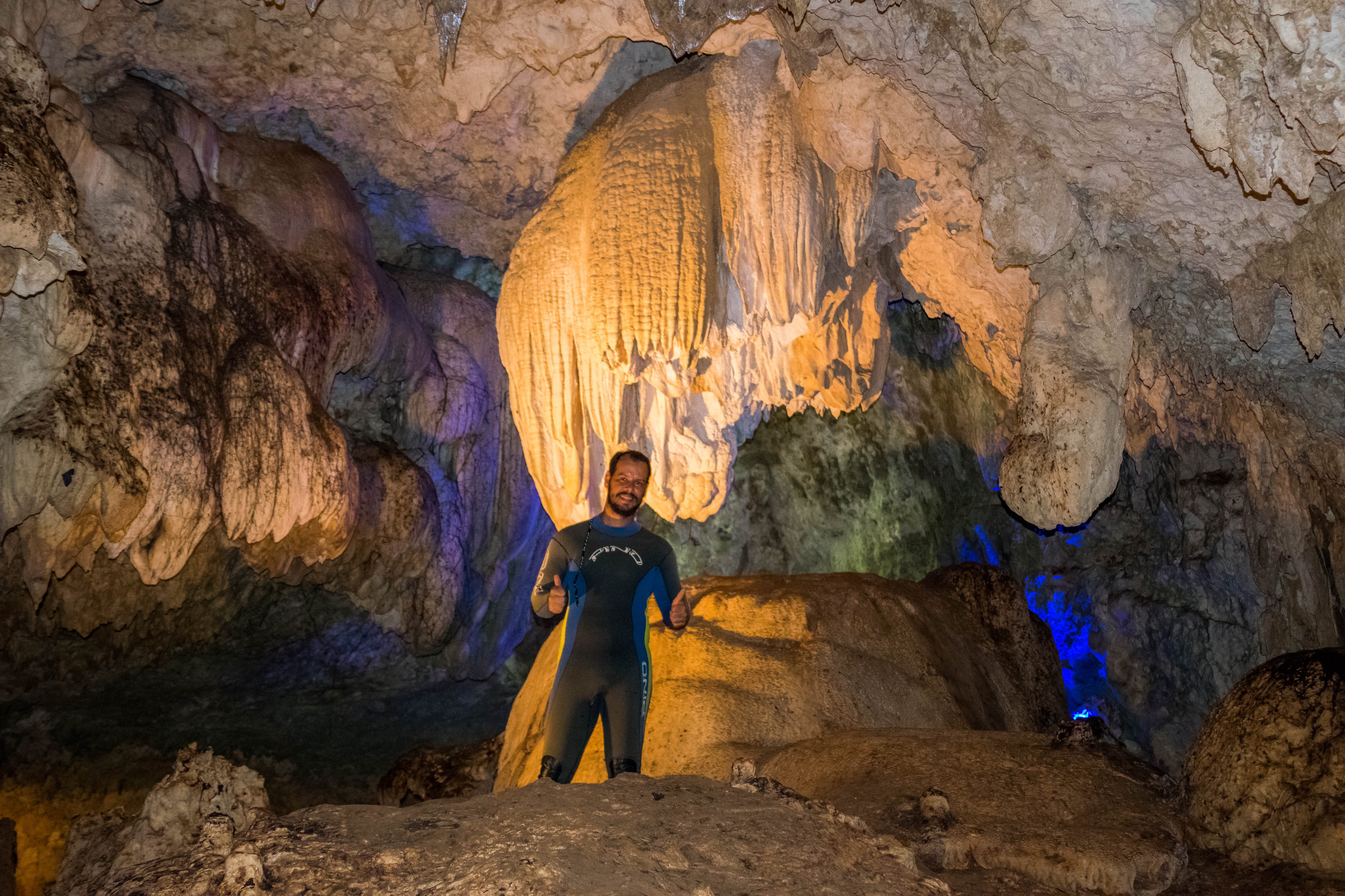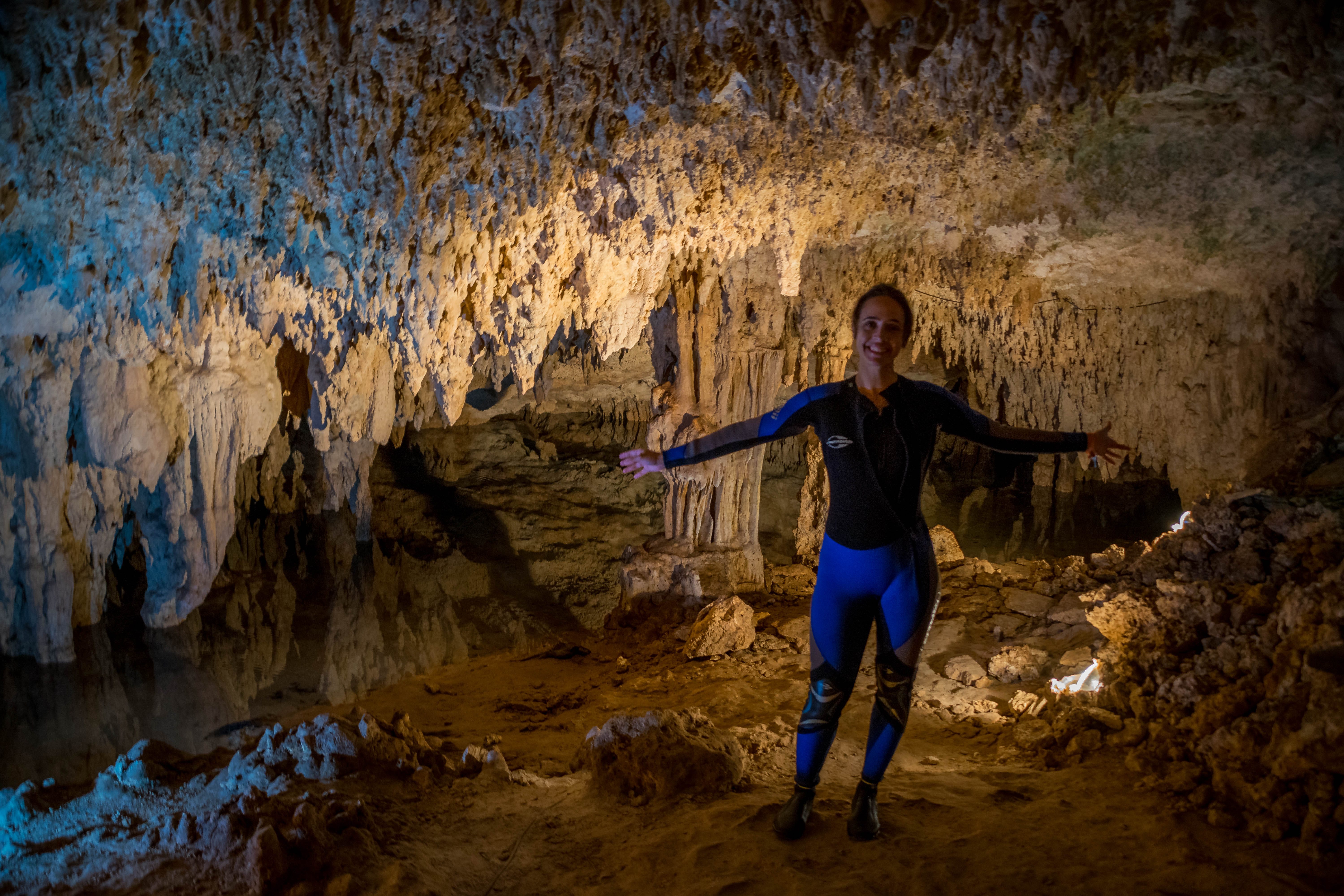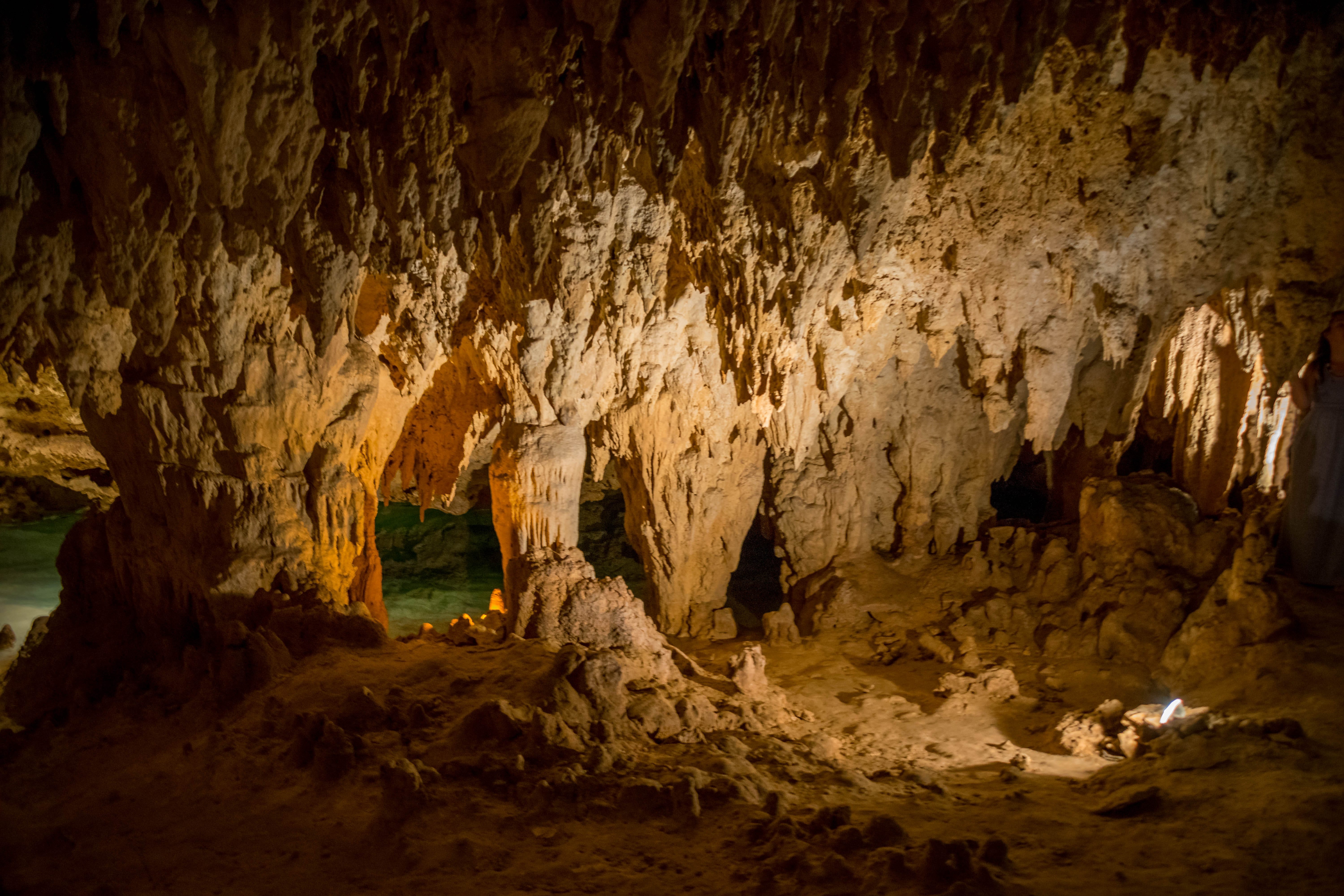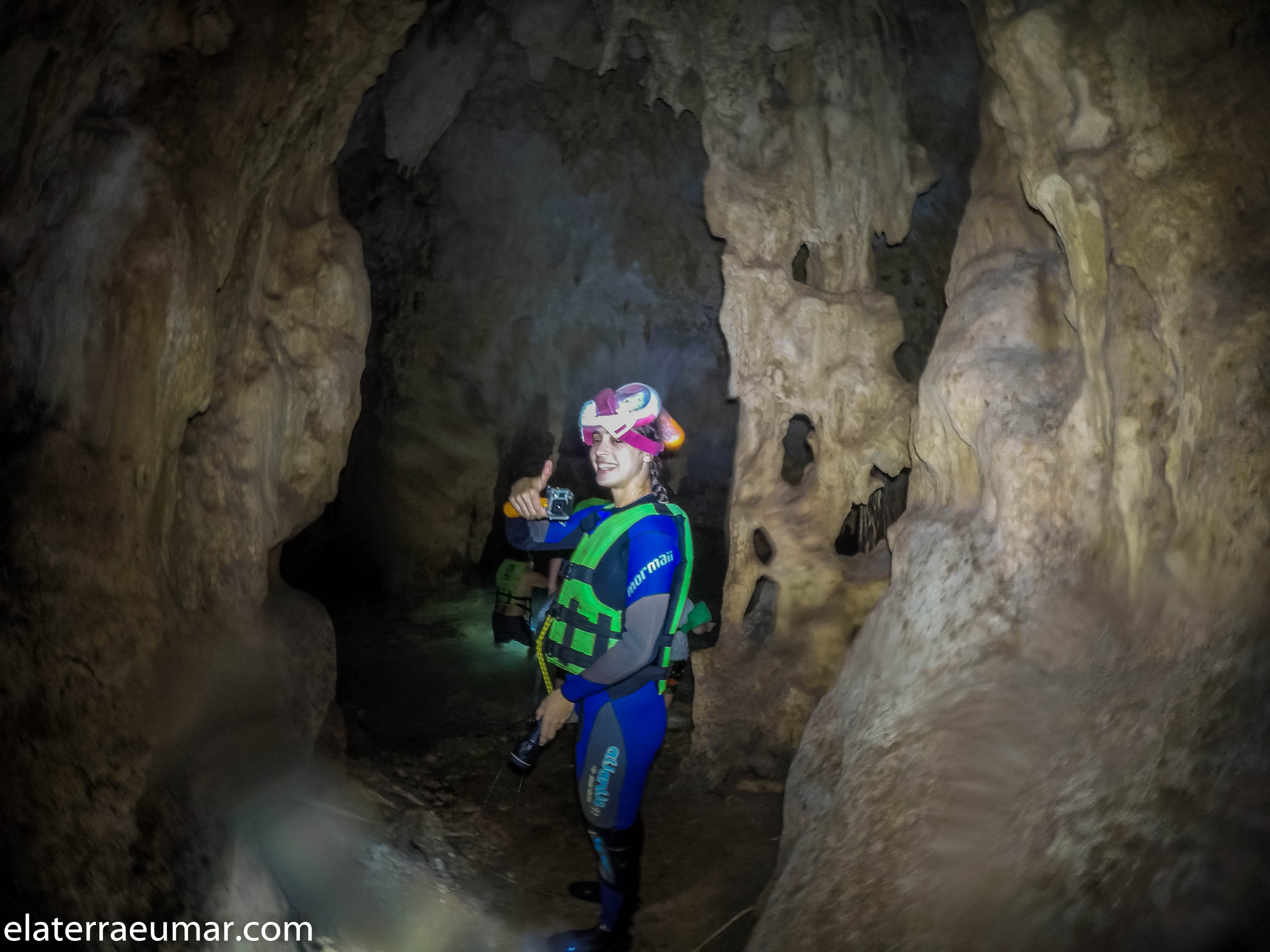 Depois de visitarmos o cenote, bem perto da barraquinha na entrada existe uma outra caverna para visitação. Não é possível nadar nessa caverna, e em alguns pontos eles ligam um gerador e a caverna fica toda iluminada. Bem bonito o passeio. A caverna era toda nossa, tinha apenas o guia nos acompanhando por um período. Essa visitação já está inclusa no valor da entrada para o cenote.